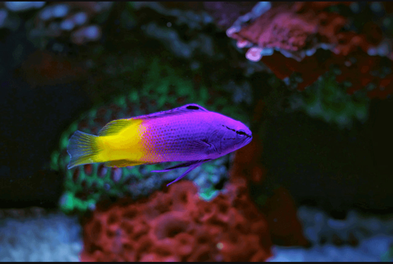 The Royal Gramma (Gramma loreto) is a stunning Caribbean basslet that brings vibrant purple and yellow coloration to any reef aquarium. Known for its peaceful temperament and hardy nature, this fish is an excellent choice for both beginner and experienced reef keepers.